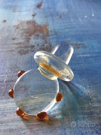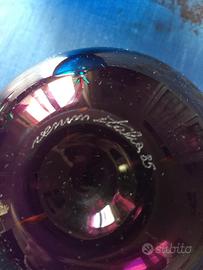 Vasetto di VENINI in vetro di Murano dal collo stretto e tappo incolore con presa circolare .Firma sotto la base :