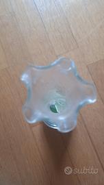 Vasetto vintage per fiori con vetrini verdi e disegni sul vetro