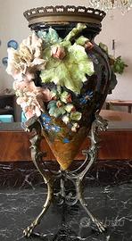 Due vasi antichi in ceramica. Motivo floreale. Portavasi lavorato. Un vaso ha una venatura nel retro (visibile in una foto). L'altro è perfetto. Vendo esclusivamente in coppia. Ritiro a cura del compratore. Genova - Zona Albaro