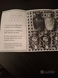 Vasi nuovi tenuti sempre in vetrina . alti circa 10cm. Base in rame e decorati con smalti . Si appoggiano su basi in legno. Alta lavorazione come di può vedere dalle foto. Vendo la coppia. Non ho la confezione originale