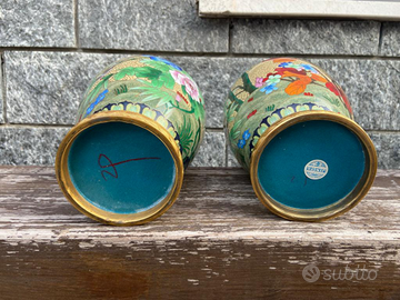 Coppia di Vasi cinesi vintage Jingfa Cloisonne motivo floreale. In ottime condizioni. Non spedisco.