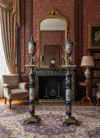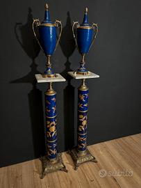 Raffinata coppia di colonne con vasi della prestigiosa manifattura Sevres,