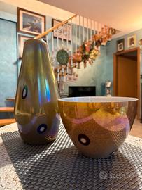 Materiale: Vetro soffiato con finitura metallica iridescente.