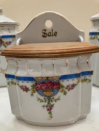 Vasi da cucina porcellana vintage 2 grandi 2 piccoli e 1 portasale decorati con scritte