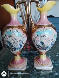 2 porta liquori in ceramica più vaso della ditta SF CORONA ceramica di Firenze degli anni 50 bei colori come potete vedere .questa azienda e nei primi 28 ceramisti di firenze.bei disegni colori vivi.pronta consegna Cell 3938505529