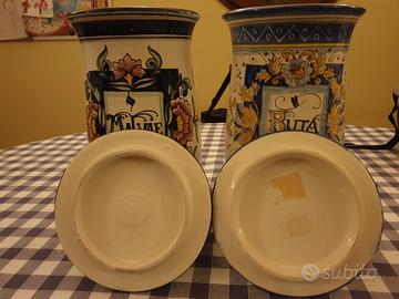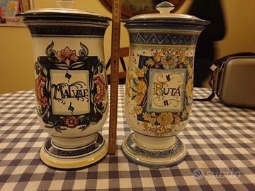 2 vasi artistici in ceramica decorati a mano. Provenienza Toscana. Altezza 30 cm circa. #idearegalo