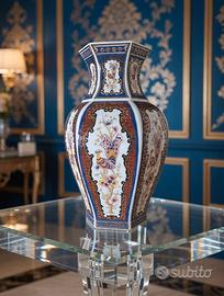 Vendo splendido set completo di vasi decorativi Bassano & Gatti, autentica produzione italiana degli anni '70-'80. Pezzi ereditati che purtroppo non si abbinano al mio arredamento – cerco qualcuno che possa apprezzarne il valore e la bellezza. DESCRIZIONE DEL SET: Il set comprende tre vasi di dimensioni graduali più un'elegante zuccheriera ornamentale con coperchio decorativo, tutti caratterizzati dallo stesso raffinato motivo ornamentale in stile orientaleggiante. Le decorazioni presentano colori intensi – blu cobalto, rosso bordeaux e dettagli dorati – con pregiati motivi floreali che impreziosiscono ogni pezzo. La forma esagonale è particolarmente distintiva e di grande impatto visivo. Ogni elemento è decorato su tutti i lati con pannelli bianchi centrali raffiguranti bouquet di fiori policromi, incorniciati da elaborate bordure geometriche. Il risultato è un'opera d'arte tridimensionale, bellissima da ogni angolazione. CONDIZIONI: Le condizioni generali sono ottime: nessuna scheggiatura, colori brillanti e vivaci, smalto perfettamente integro. Si nota chiaramente la cura con cui sono stati conservati nel tempo. Sul fondo di uno dei vasi più grandi è presente il marchio originale Bassano & Gatti, garanzia dell'autentica manifattura italiana. DA SEGNALARE: All'interno della zuccheriera sono presenti alcune macchie/aloni marroni (visibili in foto). Si tratta di un difetto puramente estetico interno che non compromette la bellezza esterna del pezzo né la sua funzione decorativa. I tre vasi sono invece perfetti anche internamente. UTILIZZO E ABBINAMENTI: Questi pezzi sono ideali per ambienti classici ed eleganti. Perfetti per creare una composizione scenografica tutti insieme, o da distribuire in diverse stanze. Valorizzano credenze, mensole, mobili d'epoca o come centrotavola di prestigio. La zuccheriera con coperchio è particolarmente ricercata dai collezionisti. Misure:Grande 42cmMedio 37cmPiccolo30cmZucchiera 20cm