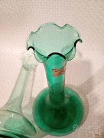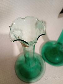 Coppia di Vasi di Murano superstiti, avevano una decorazione nella metà inferiore che con il tempo è andata persa ,ma la qualità della lavorazione artigianale d'epoca non si discute. per eventuali chiarimenti, contattatemi !