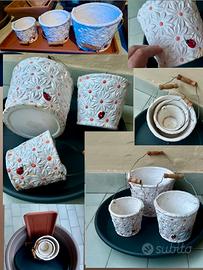 Set di 3 vasi o sotto vasi diverse misure in ceramica con la manica,