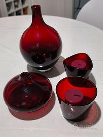 Vendo 4 oggetti in vetro bordeaux: 2 portacandele 2 bottiglie Consegna solo a mano nel bolognese, essendo delicati.