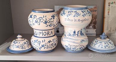Vasi artigianali in ceramica realizzati 30 anni fa per la più antica farmacia di Ariano Irpino da artigiano locale. perfettamente conservati, venduti in coppia.