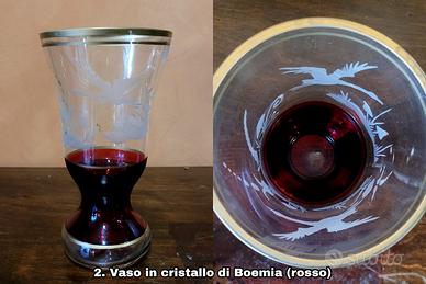 1. Vaso in cristallo di Boemia - Materiale: cristallo - Origine: Boemia - Dimensioni (D x H): 11 x 20 cm - Prezzo: 30 Euro 2. Vaso in cristallo di Boemia (rosso) - Materiale: cristallo - Origine: Boemia - Dimensioni (D x H): 11 x 20 cm - Prezzo: 30 Euro