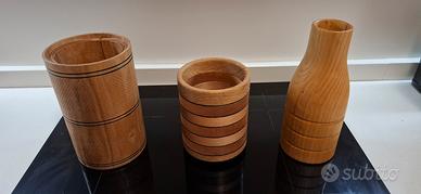 Vasi in legno massello di tiglio e rovere,con godronatura e inserto in acciaio per acqua.Misure 14 alto 21 cm
