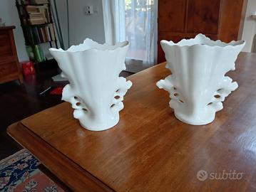 VASI del sec. XIX, presentano un disegno floreale finemente realizzato accentuato da dettagli dipinti a mano e da rifiniture dorate. Ideale per qualsiasi collezionista o come arredo decorativo o per bouquet da sposa. I pezzi sono in buone condizioni con un' usura minima che riflette la loro età. Vendibili anche separatamente