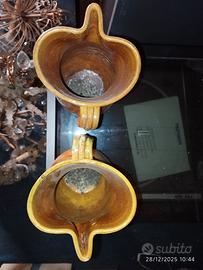 vendo splendida coppia di vasi in terracotta incisi, decorati, dipinti a mano anni 70 Altezza CM 26 DIAMETRO CM 17 spedizione a carico dell'acquirente.