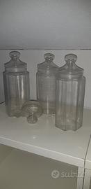 N 3 vasi in vetro con coperchio, +un coperchio, come da foto, da utilizzare in cucina o come arredamemto