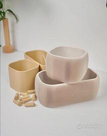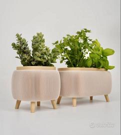 Un rifugio sereno per le tue erbe aromatiche Dai vita alla tua cucina con il set di fioriere THALOR Edition, progettato per chi ama il verde ma non vuole rinunciare a un’estetica moderna e sofisticata. Che tu stia coltivando basilico fresco per la pasta o menta per i tuoi cocktail, questi vasi trasformano un semplice davanzale in un angolo di design. Caratterizzati dalla nostra esclusiva texture a coste verticali e da una forma organica e morbida, questi vasi si integrano perfettamente in ambienti minimalisti, scandinavi o in stile Japandi. ✨ Caratteristiche Principali: Design Signature: Una trama plissé unica che crea eleganti giochi di luce. Drenaggio Integrato: Fori di scolo incorporati per mantenere le radici sane e prevenire ristagni. Piedini Minimalisti: Rialzati da terra per un look leggero e per proteggere le superfici della tua cucina. Versatilità: Perfetto per basilico, timo, origano, prezzemolo o piccole piante grasse. Divisorio Opzionale: La fioriera grande include un inserto divisorio per gestire diverse varietà di erbe nello stesso spazio. 📏 Dimensioni e Formati: Puoi scegliere tra due forme iconiche (o acquistarle in set): SMALL (Quadrato) – Ideale per una singola pianta: Esterno: 134 × 134 × 85.5 mm Interno: 97 × 97 × 88.5 mm LARGE (Rettangolare) – Ideale per erbe miste: Esterno: 134 × 231 × 85.5 mm Interno: 97 × 194 × 88.5 mm 🌿 Consigli d'Uso: Questi vasi sono progettati specificamente per l'uso indoor. La loro forma compatta è studiata per adattarsi perfettamente a davanzali, banconi della cucina o scaffali aperti. Grazie al materiale di alta qualità e alla finitura opaca, sono facili da pulire e resistenti nel tempo. 📦 Cosa riceverai: L'acquisto include la fioriera (singola o set a seconda della scelta) completa di piedini e fori di drenaggio. (Nota: le piante e il terriccio mostrati in foto non sono inclusi).