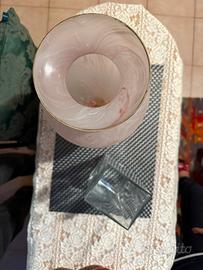 Vaso in vetro di Murano bianco e rosa cipria, caratterizzato da una finitura satinata assieme ad un porta fiori in cristallo