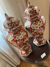 Coppia di vasi con coperchio, in ceramica, con decorazione orientale