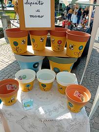 in plastica 100% riciclata e fabbricati in Europa (no Cina) , vasi e portavasi di varie dimensioni decorati con chalk paint e
