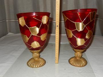 Vasi rossi Natalizi (coppia) in vetro trattato e resina