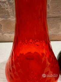 Due Vasi in vetro di Murano Monofiore Venini Arancio e Verde con filo bianco.