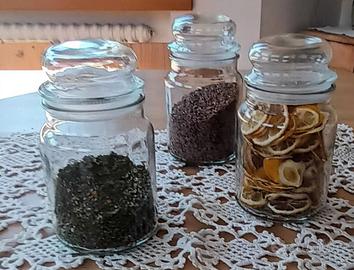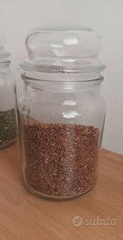 Vendo tre vasi in vetro, senza contenuto, altezza 17 centimetri