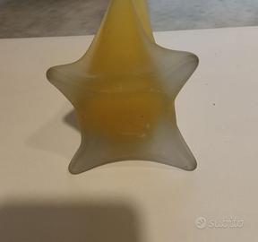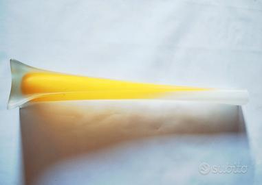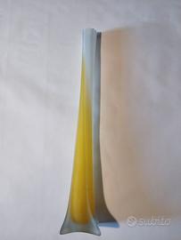 Vaso a canna in vetro giallo e bianco, vintage altezza cm 50, base cm 12 x cm 12, bocca diametro cm 4
