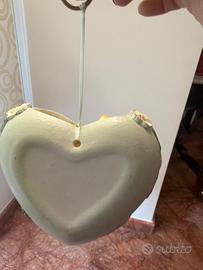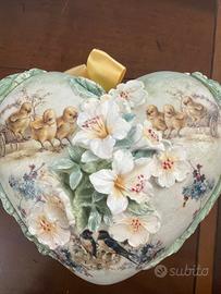 Vasetto a forma di cuore con decori con pulcini e fiori sopraelevati. Molto raffinato