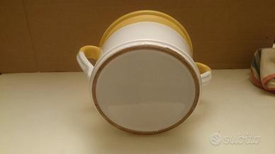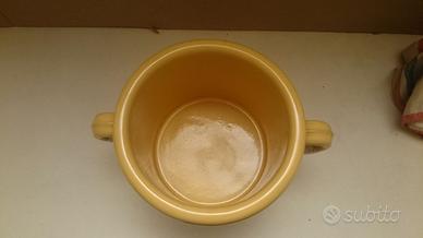 vaso a due manici bianco con bordo giallo in ceramica - misure: diam.mm.142x110h
