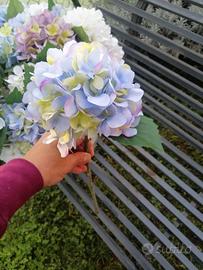 Vaso a testa romana di EDG h 40 cm, con 24 fiori di ortensia artificiali (colori: bianchi, malva e indaco). Tutto acquistato a fine agosto da Coin per evento commerciale, il tutto pagato €200.
