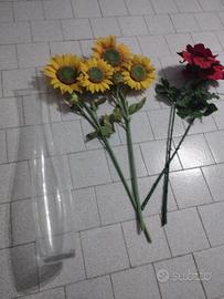 Vaso vetro alto 96cm x 13cm diametro. Ottimo con i fiori in foto. Solo vaso 10€. Fiori tutti 12€ o 4€ l'uno. Sono 4 pezzi Prezzo da concordare.