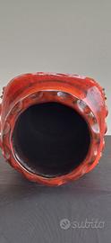 Dumler And Breiden Germania Ovest Studio Vaso in vetro lava 73/25. rosso arancio, con decorazione in rilievo