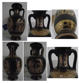 Queste bellissime anfore vasi ceramica si ispiran ad arte e cultura dell'antica mitologia greca. Presentano design multicolore con il nero come colore dominante. Prodotti in Grecia sono oggetti unici.