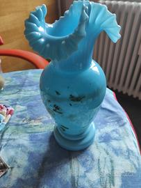 Vaso antiquariato in opalina azzurra