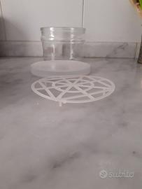 Arbanella (vaso) per conserve (acciughe , olive) in vetro capacità 1500 ml. (contenuto gr. 1650 di acciughe), diametro cm. 15 e altezza cm. 11. Griglia in plastica e coperchio in plastica. Le foto fanno parte integrante della descrizione. Ne ho altre. Il prezzo è per ciascun vaso. Solo ritiro diretto