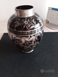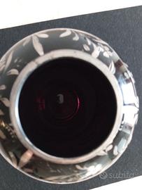 TITOLO ANNUNCIO Vaso Art Déco 26cm – Cristallo Rosso Rubino "Nero" e Argento (Silver Overlay) – Vetro Hyalith DESCRIZIONE DEL PRODOTTO In vendita un raffinato vaso vintage in pregiato cristallo di Boemia rosso rubino scurissimo. Il pezzo si distingue per il particolare effetto cromatico: la densità del colore lo fa apparire nero lucido (stile Hyalith), svelando un'anima rosso bordeaux profondo solo se attraversato dalla luce. Dettagli Tecnici e Artistici: •Design & Materiale: Forma a "anfora moderna" con corpo bombato e collo cilindrico. Cristallo pesante di alta qualità con un peso netto di 1,5 kg. •Lavorazione Silver Overlay: Ricca decorazione in argento applicato a sbalzo con motivi a rose e tralci di foglie che avvolgono il corpo del vaso. Il collo e la base sono interamente rivestiti in argento con eleganti incisioni geometriche. •Stile: Design sofisticato "Black & Silver", tipico del periodo Art Déco / Mid-Century, ideale per ambienti sia classici che moderni. •Condizioni: Eccellenti condizioni vintage. Cristallo integro, senza sbeccature o opacità. Argento con patina originale (facilmente lucidabile a specchio). Dimensioni: •Altezza: 26 cm •Circonferenza Massima: 58 cm •Peso: 1.506 g •Diametro Massimo: 8,5 cm •Diametro Base: 9 cm INFO PER L'ACQUIRENTE •Pezzo da Collezione: Un oggetto raro per la particolare colorazione del cristallo e la qualità dell'argento. •Ritiro a Domicilio: Per preservare l'integrità del cristallo, si predilige il ritiro a mano. •Pagamento: Contanti al ritiro