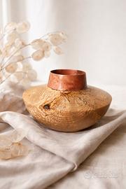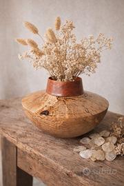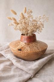vaso artigianale in legno di faggio e radica . oggetto d'arredamento e da esposizione.