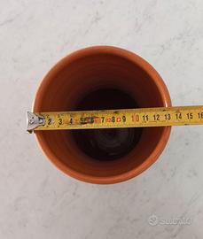 Il vaso misura 23 cm di altezza e 13,5 cm di larghezza, con interno in terracotta e rivestimento esterno in sughero finemente lavorato a mano.
