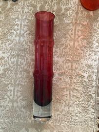Raro vaso Bamboo in vetro rosso rubino di Bo Borgström per Aseda, anni '60 Sweden.