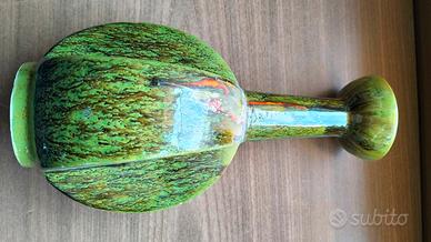 VASO CERAMICA TRIANGOLARE BASE TONDA, SMALTATO LUCIDO ARTISTA BERTONCELLO CM 27x16 NON TRATTO