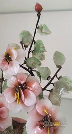 Realizzato interamente a mano, con fiori di ciliegio in giada e vetro colorato.