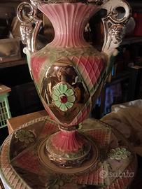 vaso in ceramica decorativa con piatto coordinato prodotto da ceramica Poggini,sesto fiorentino.