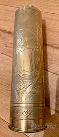 Vaso in ottone cesellato a mano, ricavato da un bossolo di artiglieria: può essere utilizzato come soprammobile o come portafiori, oggetto raro e particolare.