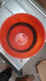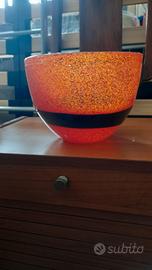 Vaso basso in vetro di Murano vintage anni 70 arancione e nero
