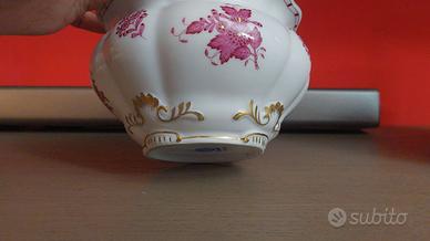 Vaso elaborato ottimo per posizionare una pianta capiente. Con ornamenti in oro dipinto interamente a mano dai maestri di Herend Hungary. Vaso anni 70, fuori produzione. Il vaso è stato usato ma si presenta come da foto.