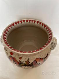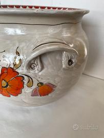 Vaso cachepot-portavaso in ceramica decorata a fiori-decoro anemoni e papaveri-