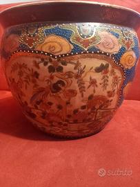 Vaso cachepot orientale, antico, ceramica, decori in rilievo.
