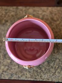 Vaso cachepot in ceramica vintage con anelli in metallo. Marca Cermac