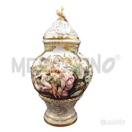 VASO CON COPERCHIO REALIZZATO IN PORCELLANA DI CAPODIMONTE FIRMATO BERNINI H TOTALE 45 CM D 24 CM